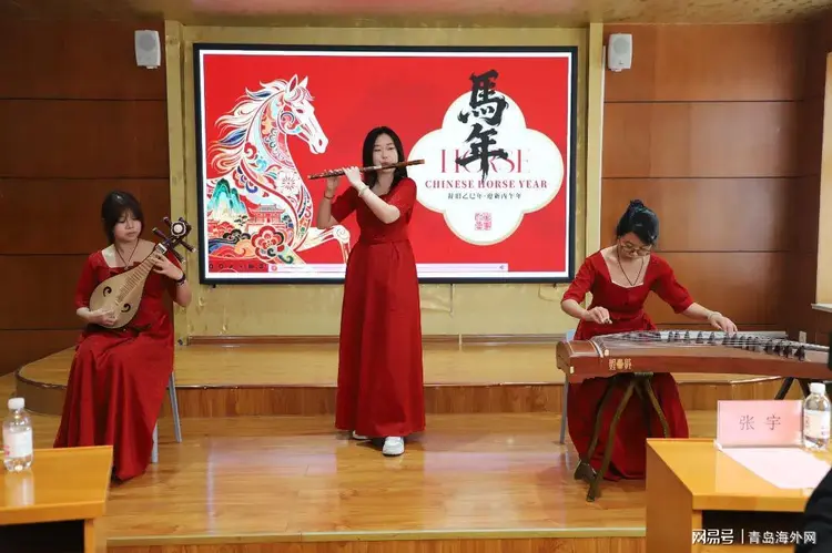 仪式文艺展演环节,青岛滨海学院文理基础学院教师王昊带来优雅古典的长笛独奏,悠扬的笛声婉转流淌,尽显古典艺术的温婉韵味;随后,俄罗斯学生代表满怀热情登台,唱响经典名曲《喀秋莎》,熟悉的旋律饱含异域风情与青春朝气,歌声与演奏交织,瞬间点燃了现场氛围;紧接着学校民乐团亮相,献上精彩的民乐表演,传统民乐的深厚底蕴与鲜活魅力,深深感染了在场观众。